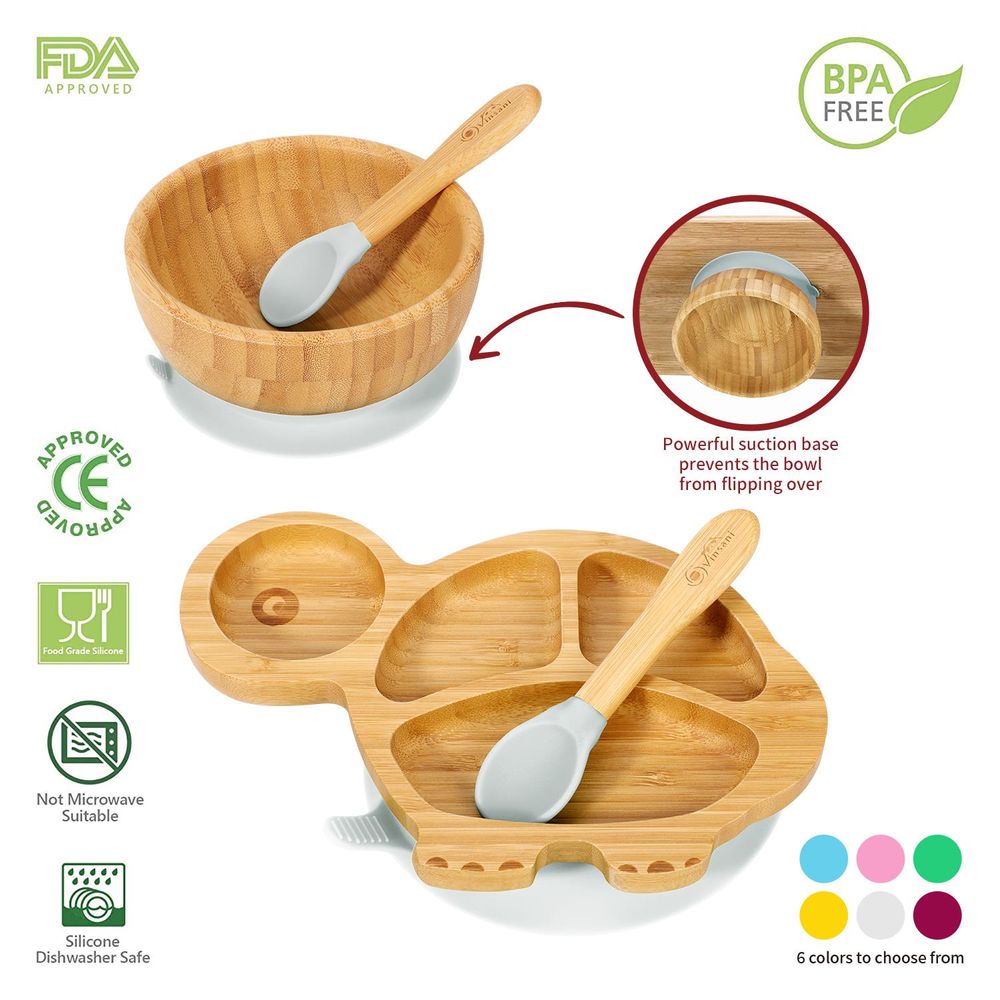 ALL-NATURAL BAMBOO: Made from all-natural hypoallergenic bamboo and food-grade silicone to protect your child from BPA, phthalates, and other toxins.