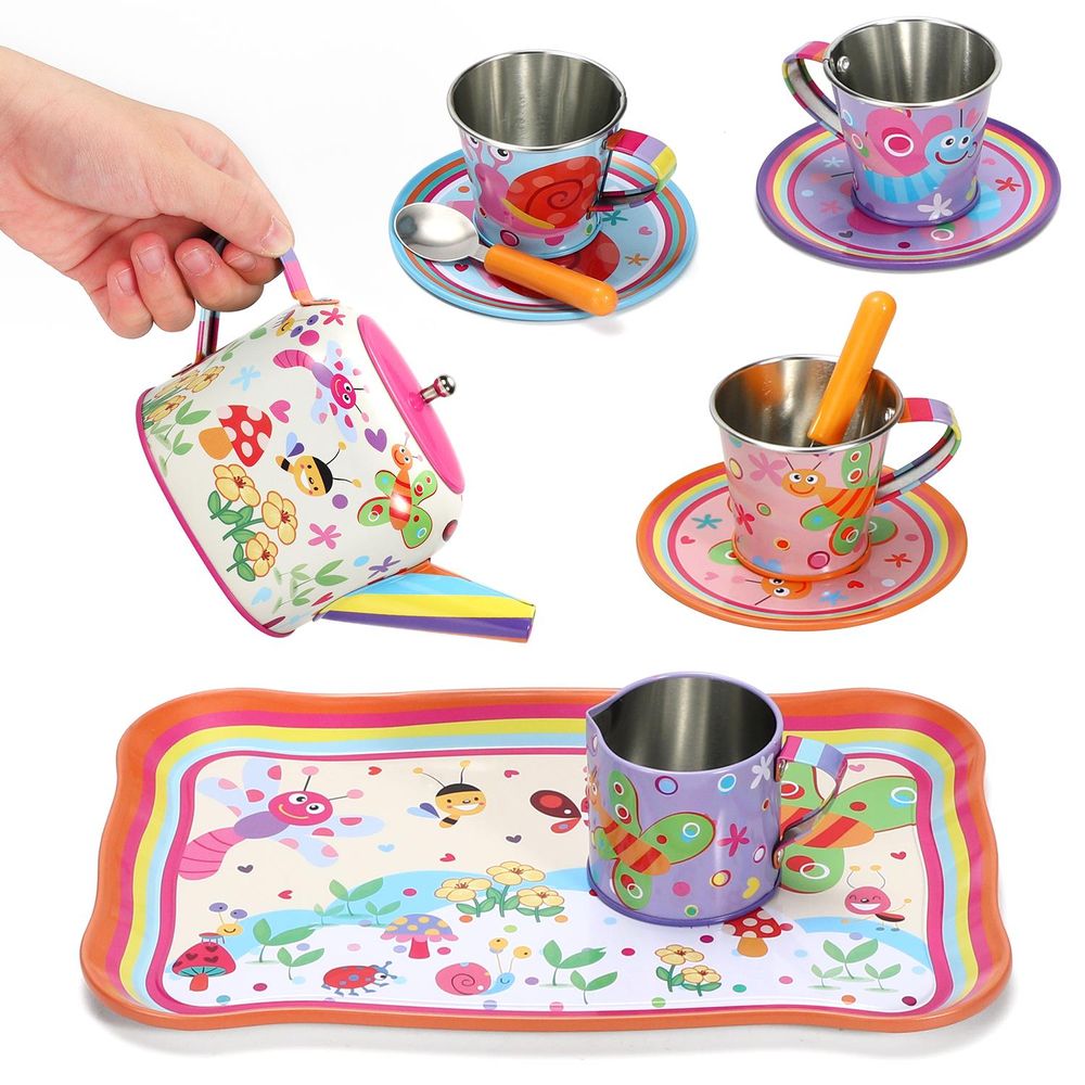 SOKA 18 Pcs Bugs Metal Tin Kids Teapot Tea Party Set Carry Case Toy Pretend Role Play