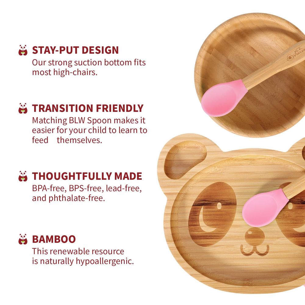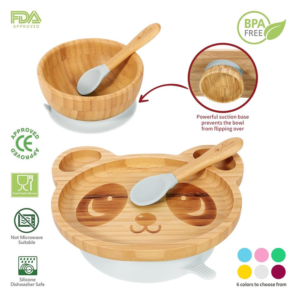 Bamboo Panda Plate Bowl & Spoon Set Suction Bowl Stay-Put Design