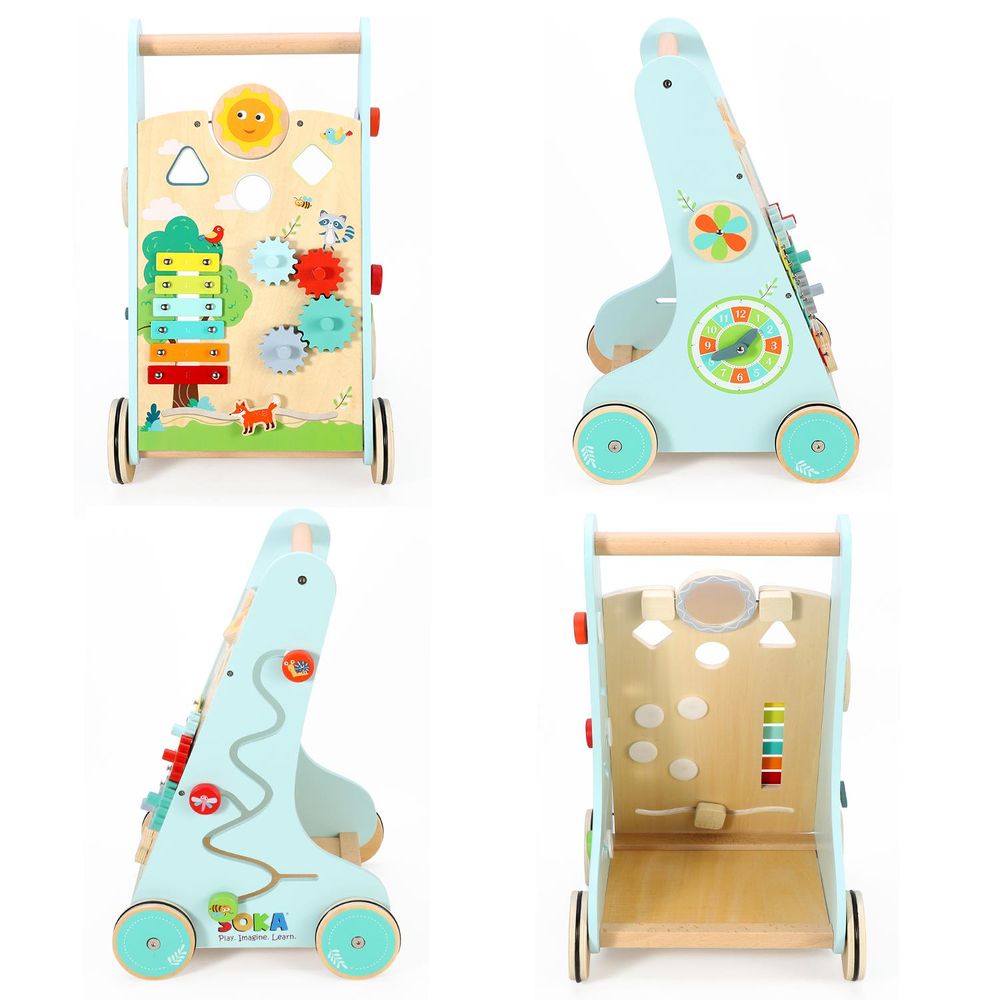 BENEFITS & DEVELOPMENT - The walker is a fantastic walk along toy encouraging your child to take their first steps. Easy for little fingers to grasp, these brightly coloured walker stimulate creativity and basic motor skills. Your little one can enjoy 6 different yet fun learning activities, which comes complete with shape blocks, clock, maze, mirror, xylophone and gear wheel.