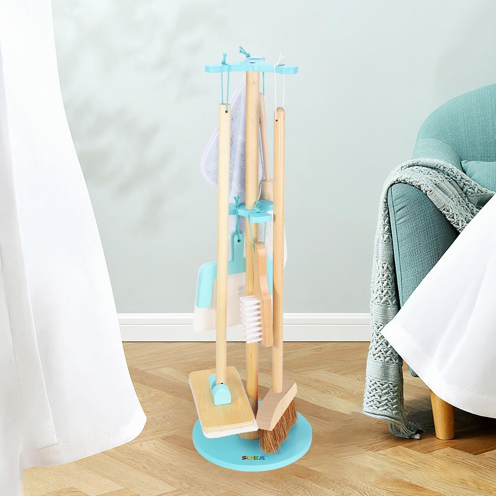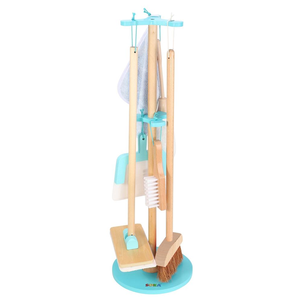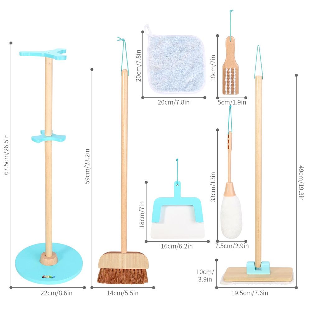 EASY ASSEMBLY & SET INCLUDES - This playset comprises of different pieces which are super easy to assemble and carry wherever they are needed. Includes a duster, broom, mop, brush, towel and dustpan. All pieces are presented in a beautifully designed bracket with hanging design that measures approximately 67.5 x 22 cm (26.5 x 8.6 inches)