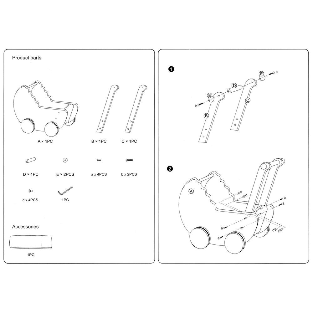 SET INCLUDES - Pretty pink Princess Pram with bedding. Doll Not Included. Includes Instruction Manual